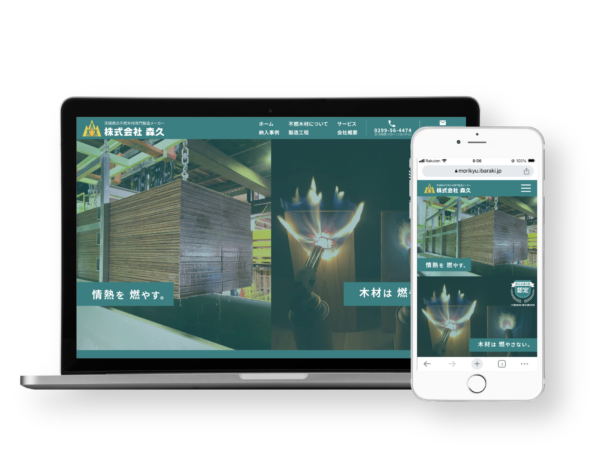 茨城県小美玉市で不燃木材の製造を行う株式会社 森久(もりきゅう)様のホームページを制作させていただきました。